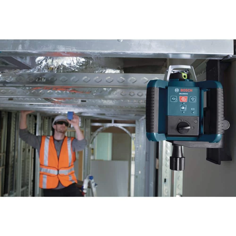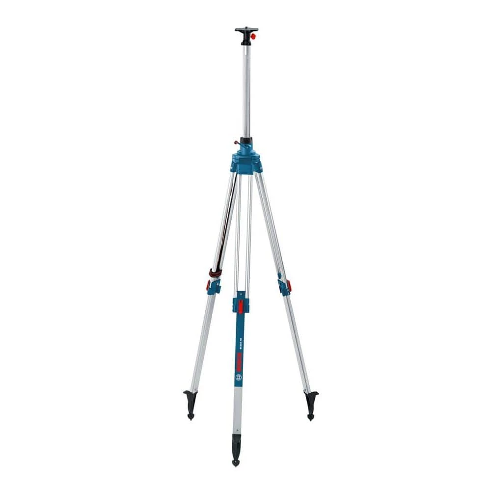 Bosch’s BT300 Heavy-Duty Professional Building Tripod feature all-surface rubber feet, ideal for grabbing slick surfaces such as flooring or concrete, they can be retracted to reveal sharp metal points for use on uneven outdoor terrain. These wing nut clamping tripods have an adjustable range of 20 in. and improved gear system for smooth continuous motion. Heavy-duty folding handle is made from aluminum and brass.