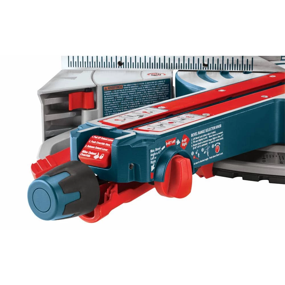 - Large easy-to-read uniform bevel and stainless steel miter scales: 52° left/60° right miter capacity, 47° left/47° right bevel capacity with marked detents and roof pitch angles