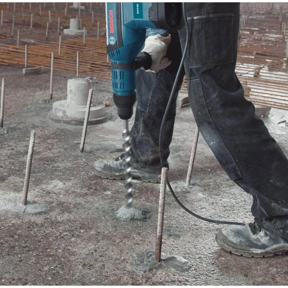 The Bosch RH745 SDS-max 1-3/4 In. rotary hammer features best in class drilling and chiseling performance with 8.2 Ft.-Lbs. Impact energy (EPTA). The hammer features two modes of operation. Rotary hammer or hammer-only and a variable speed dial for controlled drilling and chiseling applications. The tool also features the Vario-Lock function. This allows the chisel to be rotated into 12 different positions to optimize the working angle when used in hammer only mode.