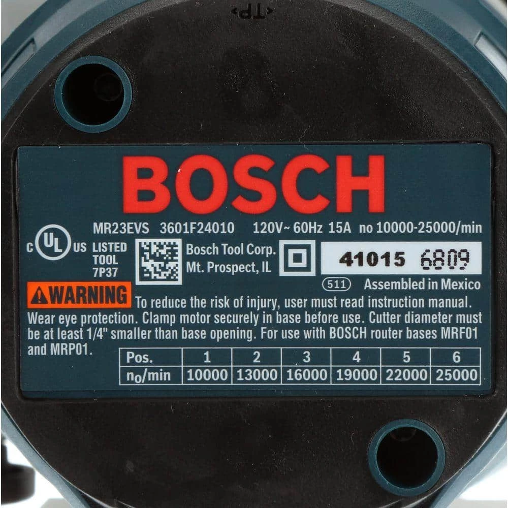 The Bosch MRC23EVSK 2.3 HP Electronic Modular Router System is an advanced set-up that provides a fixed base and a plunge base for the MR23EVS router. This system allows for outstanding operator control, with the trigger-control system that has a power switch in both the plunge-base’s and the fixed-base’s handle. The plunge base’s Afterlock microfine bit-depth adjustment at any plunge setting allows for precision, with an adjustable turret stop makes it easy to set any cumulative depth. With a smooth plunge action and a spring-lock plunge lever, this router gets accurate results. The fixed base has microfine bit-depth adjustment, with a continuous depth range of 1-5/8 in., allowing for accurate and fast changes, while its precision-centering design allows the bit to be centered with the sub-base or optional template guides. The router has a 15 Amp motor and adjustable speed settings. The variable-speed dial allows the operator to match the speed to the material. Constant Response circuitry delivers a constant speed throughout the cut. Users can glide along the intended cutline using dovetail fixtures, templates, jigs and other guidance devices.