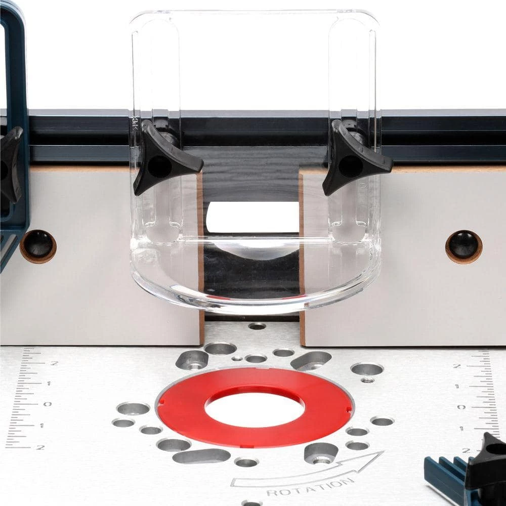 - Includes a set of 3 mounting plate insert rings, mounting hardware and 2 adjustable feather boards