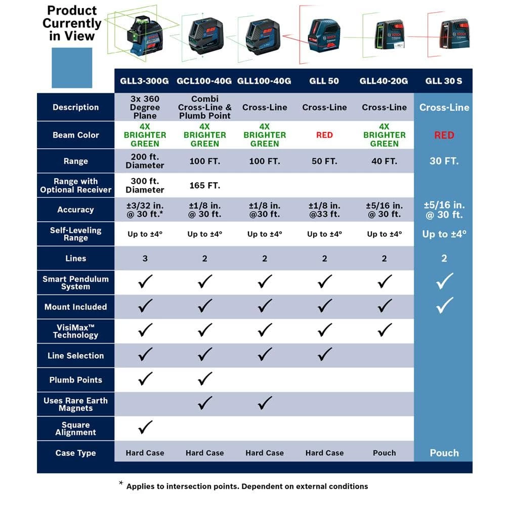 The Bosch GLL 30 Self-Leveling Cross-Line Laser projects two lines, making a cross-line projection, for a wide array of level and align uses. This versatility makes it more valuable than a typical line laser. With top-notch accuracy and one-switch operation, the user’s leveling and alignment tasks are done quickly and correctly. The laser lines are visible up to 30 Ft. The Smart Pendulum System self-levels and indicates out-of-level condition to help ensure an accurate layout,. The pendulum system locks when switched off, to assure secure tool transport. The included MM 2 Flexible Mounting Device provides microfine height adjustment, and it allows the laser to be clamped on virtually any surface from 1/2 In. to 2-1/4 In. thick, for level lines at any height.