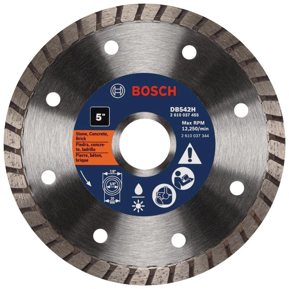 Each Bosch diamond abrasive blade is the result of joining superior materials with years of engineering excellence. Bosch customers benefit from blades that don’t just meet the task, they exceed user expectations. The Bosch 5 in. General-Purpose Diamond Circular Saw Blade is designed for dry cutting of concrete and masonry.
