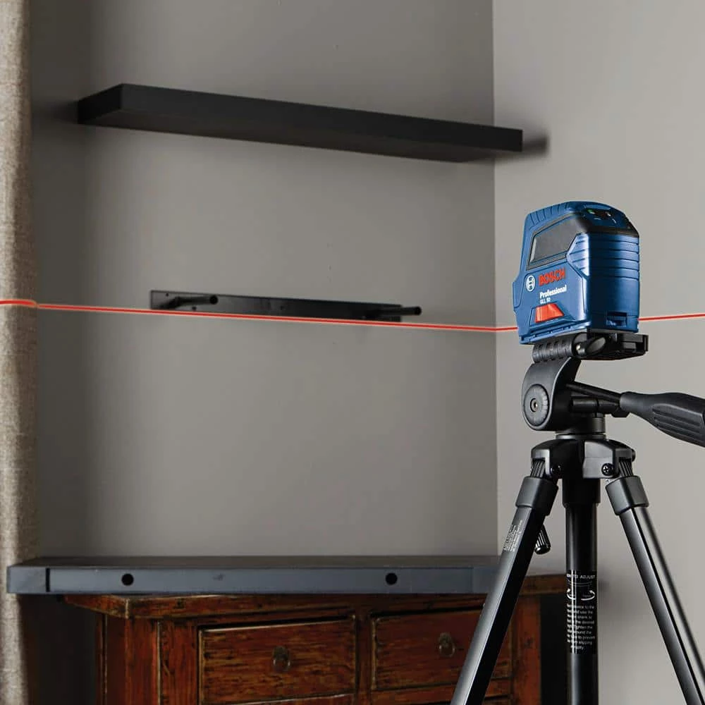 The Bosch GLL 50 Self-Leveling Cross-Line Laser Kit features a laser with vertical, horizontal and cross-line modes that projects 2-lines independently or together. This permits a broad array of alignment and leveling applications. The laser lines are visible up to 50 ft., with an accuracy of plus/minus 1/8 in. at 33 ft. The included BM3 Positioning Device offers quick setup in ceiling grid applications and free-standing mode with its retractable feet. This laser is built with sturdy over-molded construction for durability.