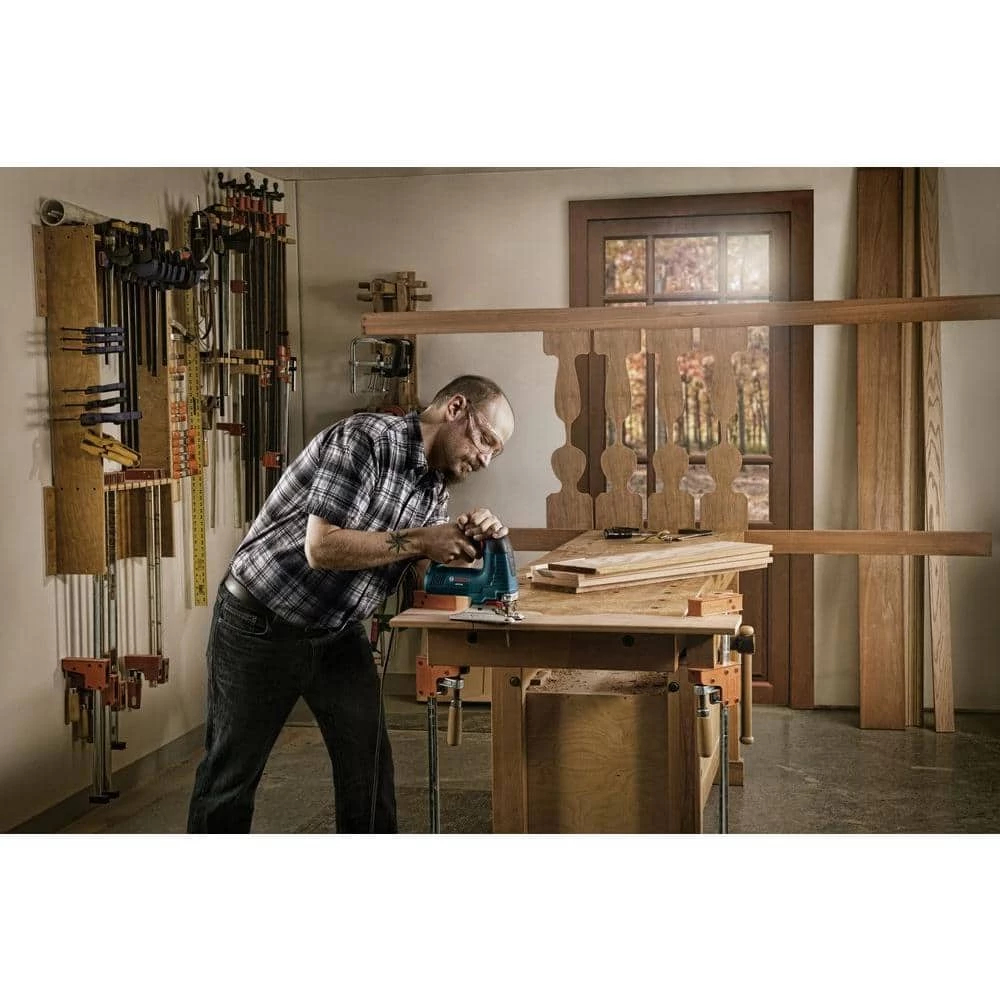 With a precision-machined plunging mechanism and low-vibration design this Bosch JS365 120-Volt, 6 Amp Jig Saw offers enhanced accuracy and smooth cutting. An ergonomic top handle and 2-finger trigger provide a comfortable, secure grip. The variable speed dial lets you set the dial to maximum speed and use the accelerator trigger to control it. This kit also contains T15RC – a bonus 15-piece T-Shank wood and metal jig saw blade set.