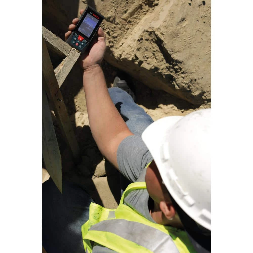 The Bosch BLAZE Outdoor GLM 400 C Connected Laser Measure with Digital Viewfinder features an adjustable zoom to find the laser spot in sunlit conditions. The digital laser Measure also offers Bluetooth functionality, so users can digitally transfer measurements to a smartphone or tablet. It is an easy-to-use tool, with integrated guides that walk the user through each measurement process. Accurately measures distances up to 400 ft.