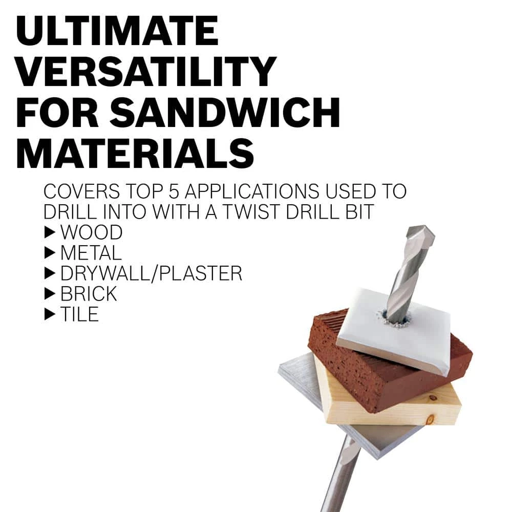 - Multi-grind technology for faster drilling and longer life in multi-material applications