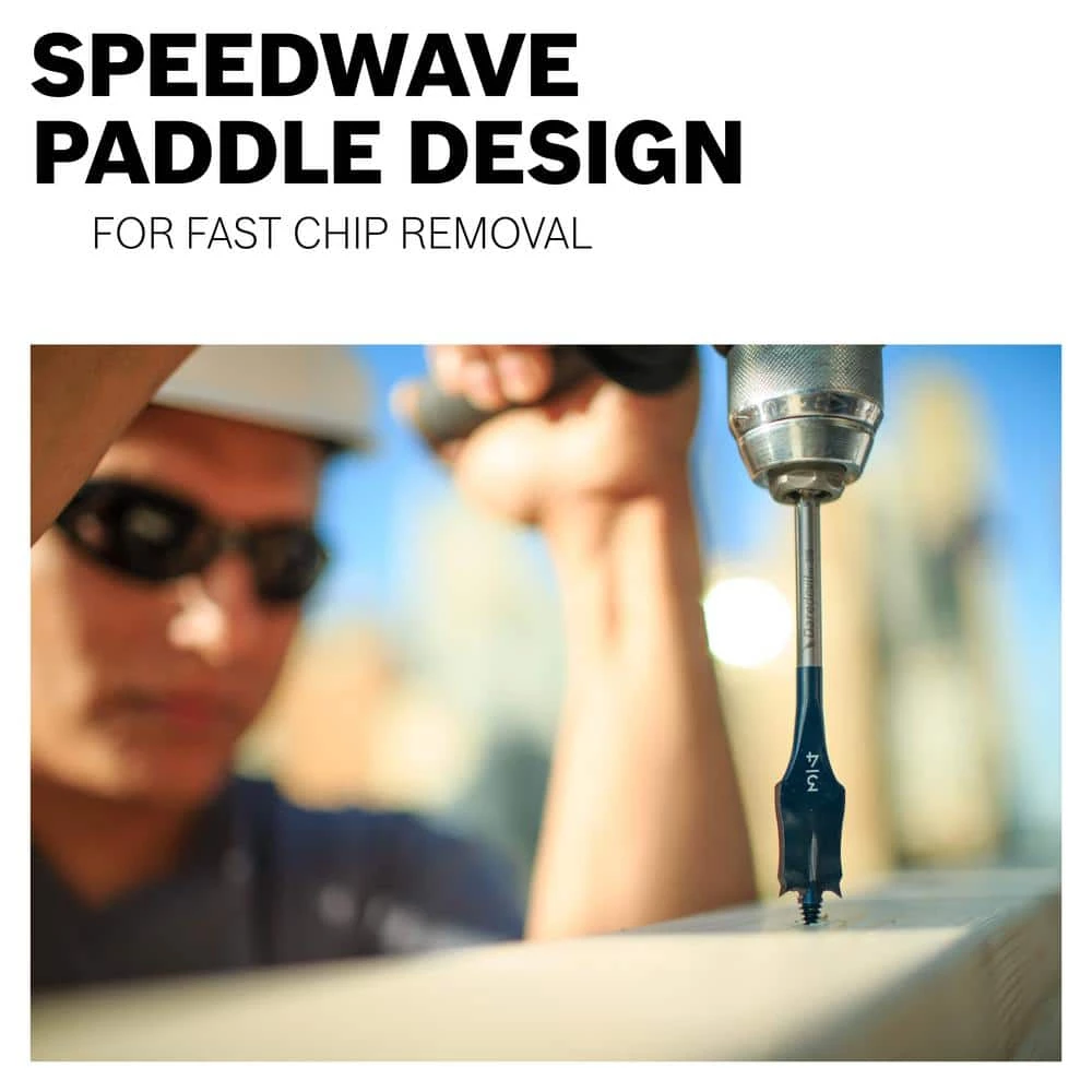 The Bosch Daredevil Spade Bit Set includes 10 bits built with the Daredevil paddle design for faster drilling. A 1/4 in. hex power groove shank enables versatile use in a wide variety of drill types and also helps reduce slippage. The full-cone threaded tips deliver fast and effortless drilling, while the spur and reamer help ensure clean holes with reduced breakout.