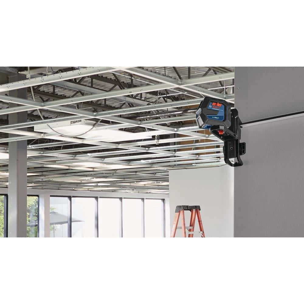 The Bosch GLL100-40G Green Beam Self-Leveling Cross-Line Laser uses green-beam technology, which emits green lines up to 4X brighter than standard red beams. This gives the laser a working range up to 100 ft. The laser produces vertical, horizontal and cross-line modes and the tool can project 2 lines independently or together, for a broad array of alignment and leveling applications. It includes Bosch-exclusive VisiMax technology, which monitors tool temperature and power consumption to deliver the brightest line for the job. The tool has full rubber overmold housing, designed to be similar to a roll cage, so every major impact point is reinforced with rubber. It is an IP64 rating and features deeply recessed windows help protect the laser glass. The onboard user interface allows easy selection among the layout modes. The Bosch Smart Pendulum System self-levels and indicates out-of-level condition and it locks the pendulum for secure transport. The included LB10 L-Bracket and DK10 ceiling clip offer quick setup and extra-strong magnets.