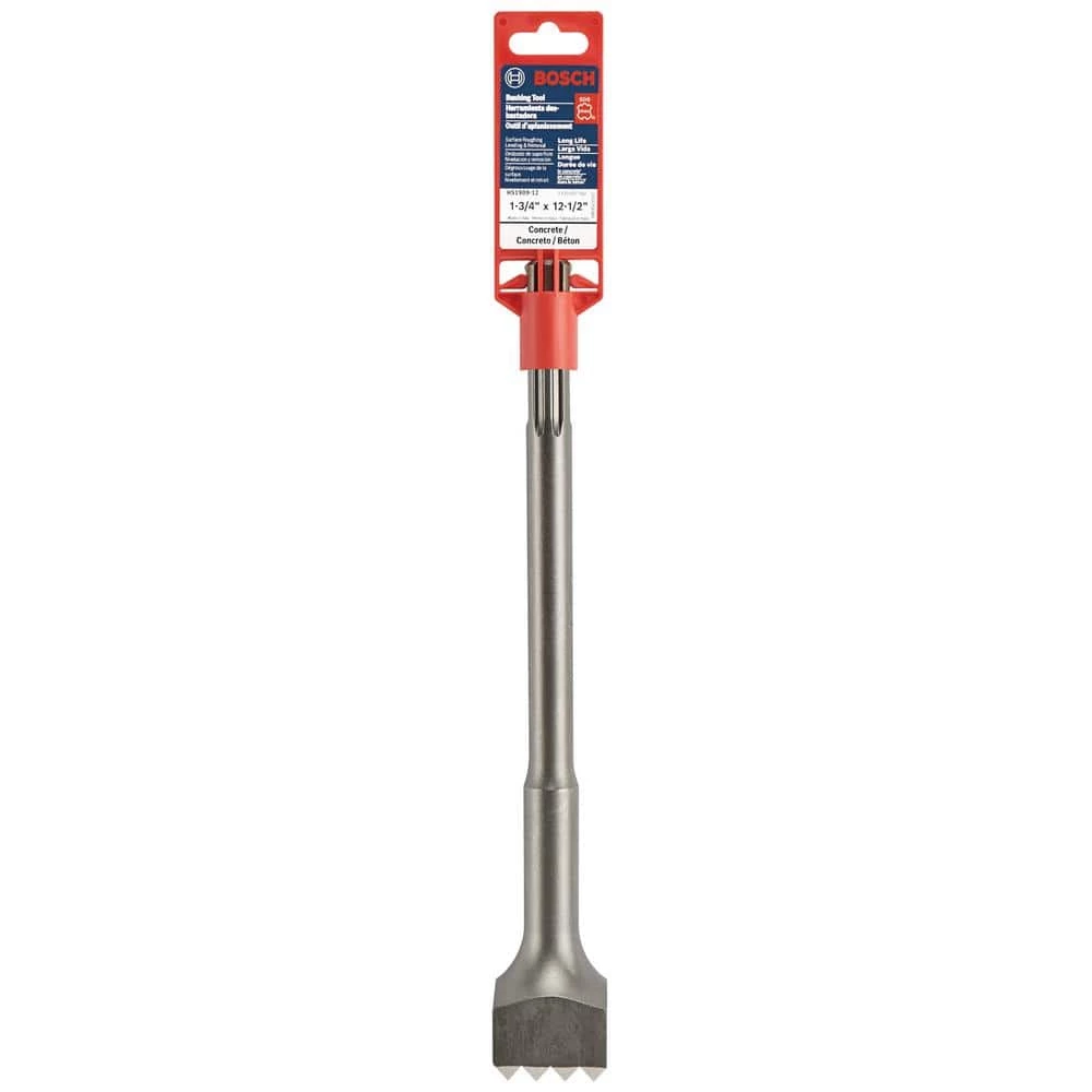 The Bosch HS1909-12 SDS-max 12.5iIn. Bushing Tool is a longer bushing tool for more comfort so the user has less bending while working. The longer 12.5 in. shank on the bushing tool allows use with the optional Bosch HDC300 dust-extraction attachment. The attachment is part of the Bosch PRO+GUARD end-to-end dust-protection system. The head is engineered for longer life in heavyweight applications. The shank is made from high-strength heavy-duty steel. This is the tool to use to remove excess concrete and bumps, while tacking down the exterior finish. The head design is optimized for fast concrete-roughing results. This 1-piece tool has a precision-made SDS-max shank designed for maximum power transfer for consistent force on the head of the tool.