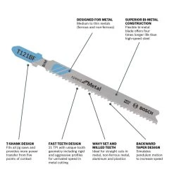 12 Teeth Bi-Metal T-Shank Jig Saw Blade Set for Cutting Medium-Thin Metals (3-Pack) by Bosch