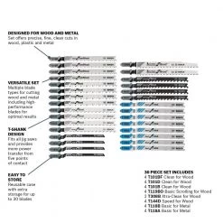 Multi-Purpose Steel T-Shank Jig Saw Blades Set for Cutting Wood and Metal (15-Pack) by Bosch